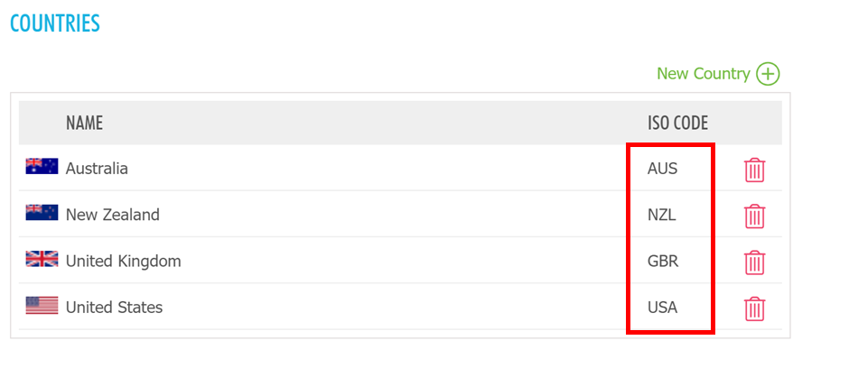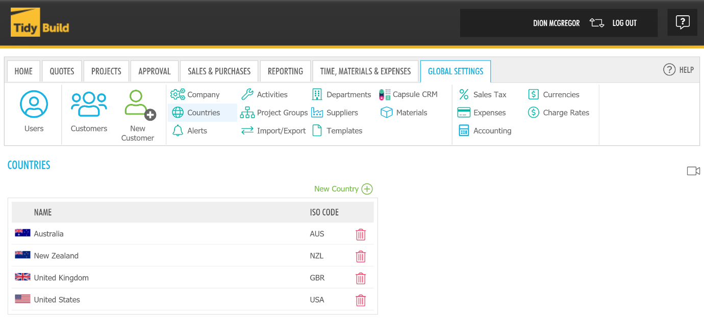 | Country | Required. Full name of a country that has already been added to the list of Countries in TidyBuild. |